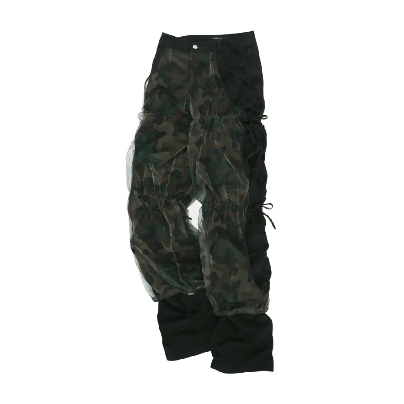 CAMOUFLAGE MESH LAYERED TYING PANTS apa767w (BLACK)