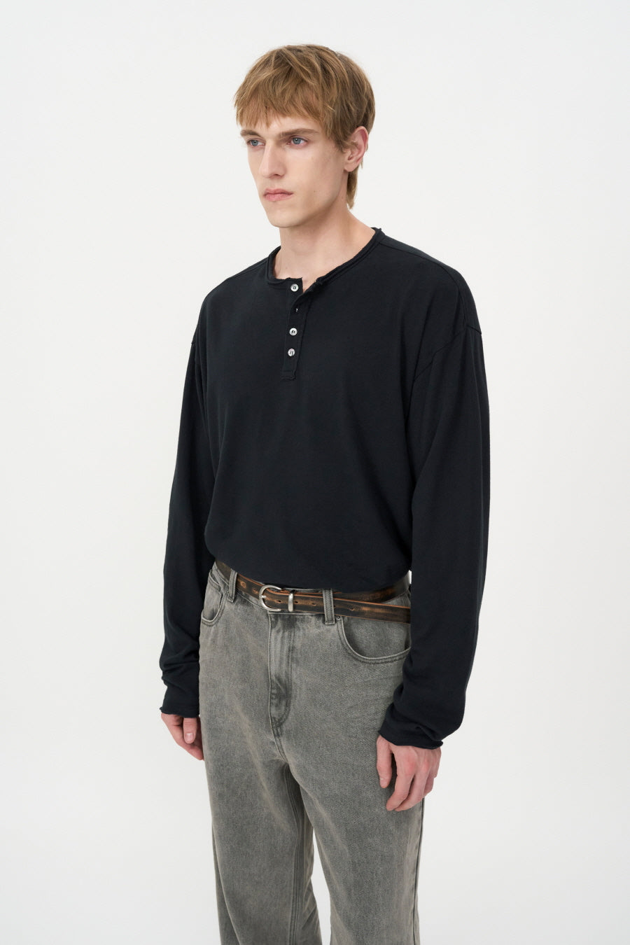 Distressed Leather Belt DARK BROWN